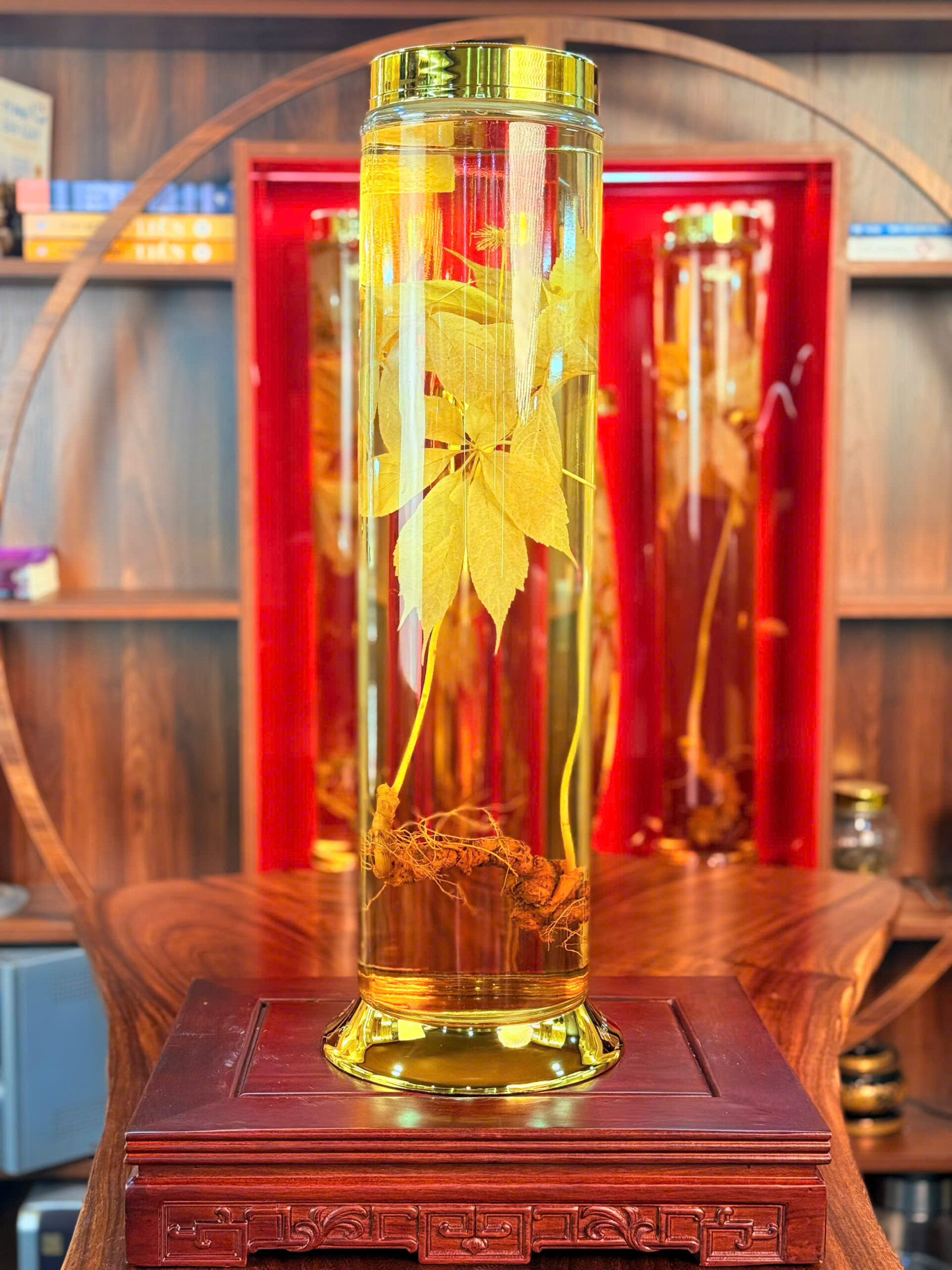 Là tuyệt phẩm cao cấp từ thương hiệu Vinaplo, kết hợp tinh hoa của Sâm Ngọc Linh quý hiếm – “Quốc bảo Việt Nam” – được ngâm nguyên cây có cả của thân, lá và hoa trong bình thủy tinh sang trọng. Sản phẩm không chỉ là thức uống bổ dưỡng mà còn là món quà biếu ý nghĩa, vật phẩm trưng bày đẳng cấp cho không gian phòng khách, bàn làm việc hay quầy lễ tân.
