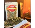 Trà lá sâm Ngọc Linh là sản phẩm được chế biến từ những lá sâm tuyển chọn, sấy khô giữ nguyên hương vị tự nhiên. Khi pha, nước trà có màu vàng nhạt, vị thanh nhẹ, hơi đắng dịu và để lại hậu ngọt dễ chịu.
