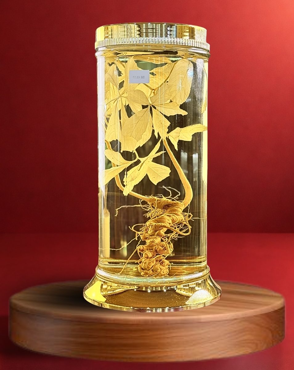 Là tuyệt phẩm cao cấp từ thương hiệu Vinaplo, kết hợp tinh hoa của Sâm Ngọc Linh quý hiếm – “Quốc bảo Việt Nam” – được ngâm nguyên cây có cả của thân, lá và hoa trong bình thủy tinh sang trọng. Sản phẩm không chỉ là thức uống bổ dưỡng mà còn là món quà biếu ý nghĩa, vật phẩm trưng bày đẳng cấp cho không gian phòng khách, bàn làm việc hay quầy lễ tân.