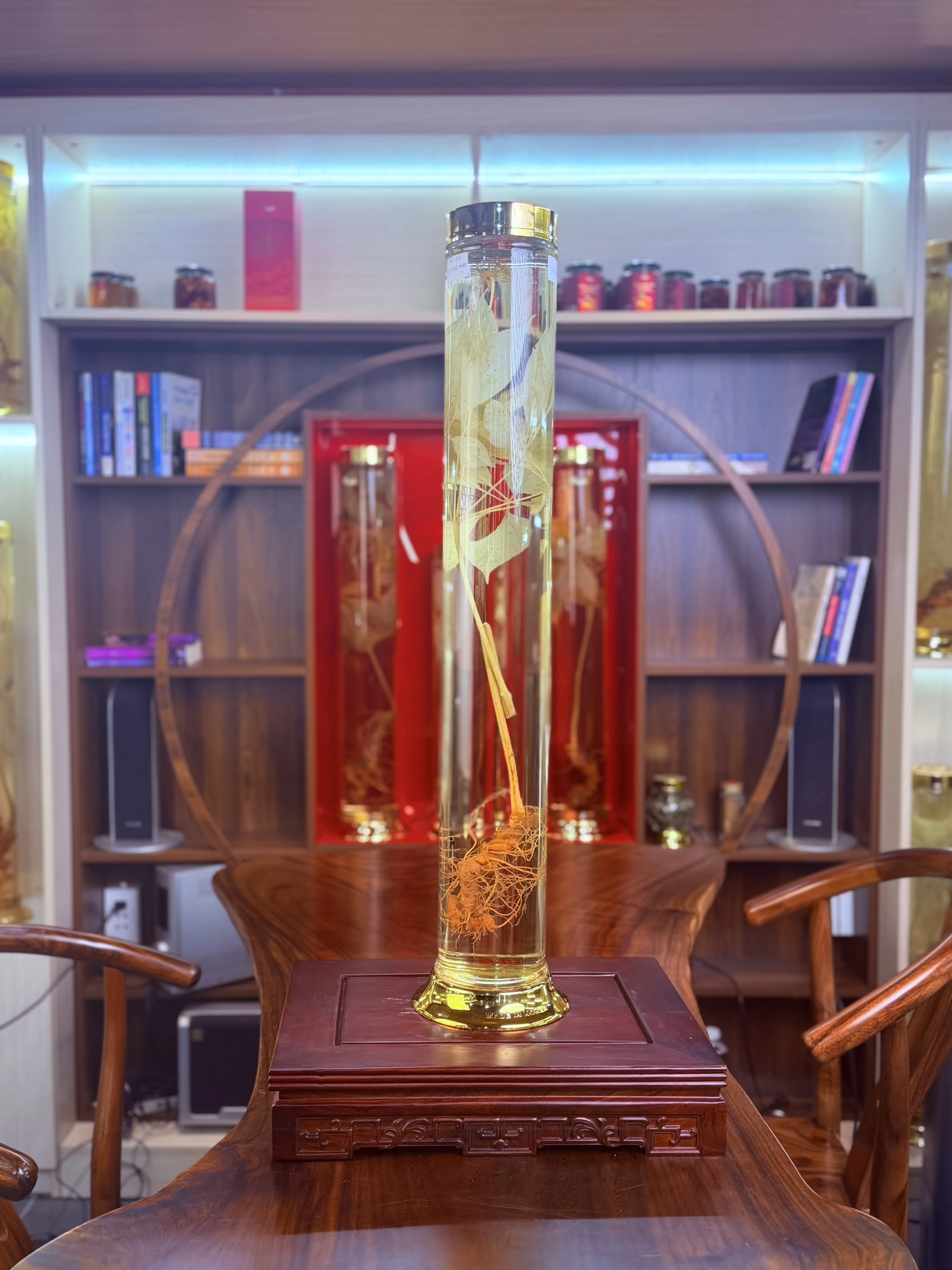 Là tuyệt phẩm cao cấp từ thương hiệu Vinaplo, kết hợp tinh hoa của Sâm Ngọc Linh quý hiếm – “Quốc bảo Việt Nam” – được ngâm nguyên cây có cả của thân, lá và hoa trong bình thủy tinh sang trọng. Sản phẩm không chỉ là thức uống bổ dưỡng mà còn là món quà biếu ý nghĩa, vật phẩm trưng bày đẳng cấp cho không gian phòng khách, bàn làm việc hay quầy lễ tân.