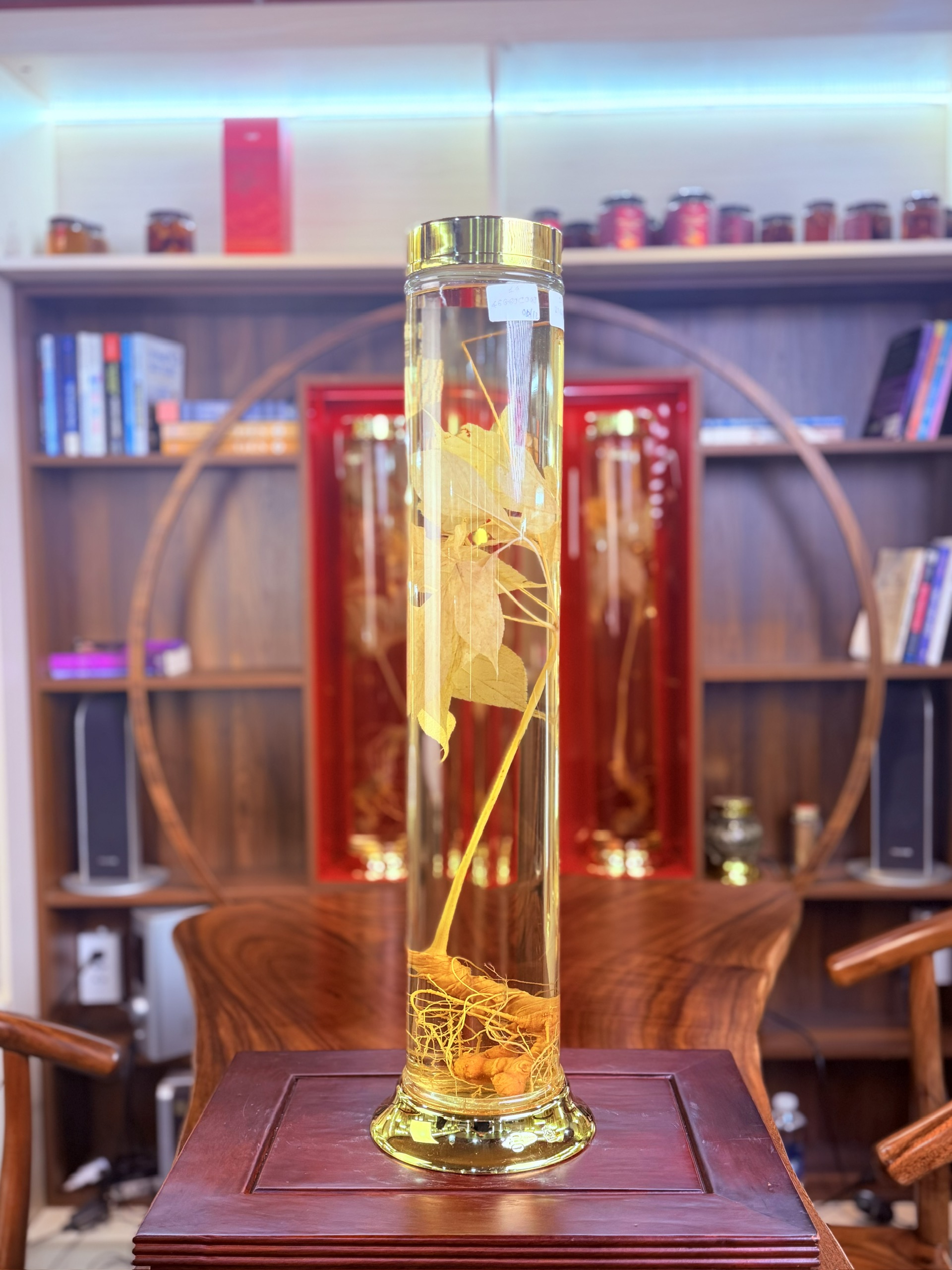 Là tuyệt phẩm cao cấp từ thương hiệu Vinaplo, kết hợp tinh hoa của Sâm Ngọc Linh quý hiếm – “Quốc bảo Việt Nam” – được ngâm nguyên cây có cả của thân, lá và hoa trong bình thủy tinh sang trọng. Sản phẩm không chỉ là thức uống bổ dưỡng mà còn là món quà biếu ý nghĩa, vật phẩm trưng bày đẳng cấp cho không gian phòng khách, bàn làm việc hay quầy lễ tân.