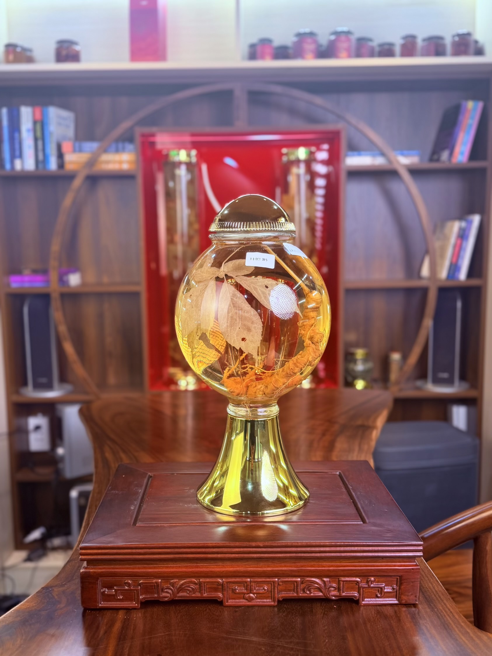 Là tuyệt phẩm cao cấp từ thương hiệu Vinaplo, kết hợp tinh hoa của Sâm Ngọc Linh quý hiếm – “Quốc bảo Việt Nam” – được ngâm nguyên cây có cả củ, thân, lá và hoa trong bình thủy tinh sang trọng. Sản phẩm không chỉ là thức uống bổ dưỡng mà còn là món quà biếu ý nghĩa, vật phẩm trưng bày đẳng cấp cho không gian phòng khách, bàn làm việc hay quầy lễ tân.
